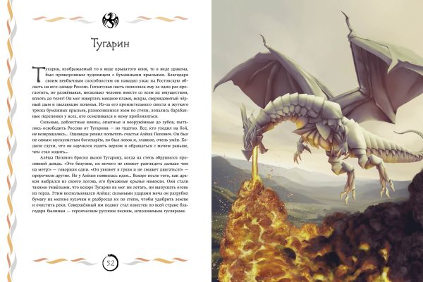 «Все мы с детства так или иначе знакомы с героями и чудовищами древних мифов. Вечные сюжеты, архетипичные образы, борьба добра со злом постоянно воспроизводятся в современных романах, фильмах, компьютерных играх. И зачастую яркие антагонисты из легенд привлекают наше внимание ничуть не меньше положительных персонажей. В книге «Мифы и легенды. Бестиарий древних цивилизаций» вас ждёт встреча как уже со знакомыми существами, такими как медуза, минотавр, гидра, так и с малоизвестными монстрами разных эпосов. Например, древнегреческим драконом Пифоном, птицей-людоедом с берегов Миссисипи, азиатскими нагами и даже прожорливым чудищем Тугариным, наводившим ужас на Ростовскую область! Текст специалиста по античной культуре Николая Куна дополнят великолепные современные иллюстрации Давида Корси, а поскольку издание отпечатано на приятной наощупь мелованной бумаге, оно станет оригинальным подарком для любого ребёнка или взрослого, интересующегося мифами и легендами» — рассказала об издании редактор Марина.
